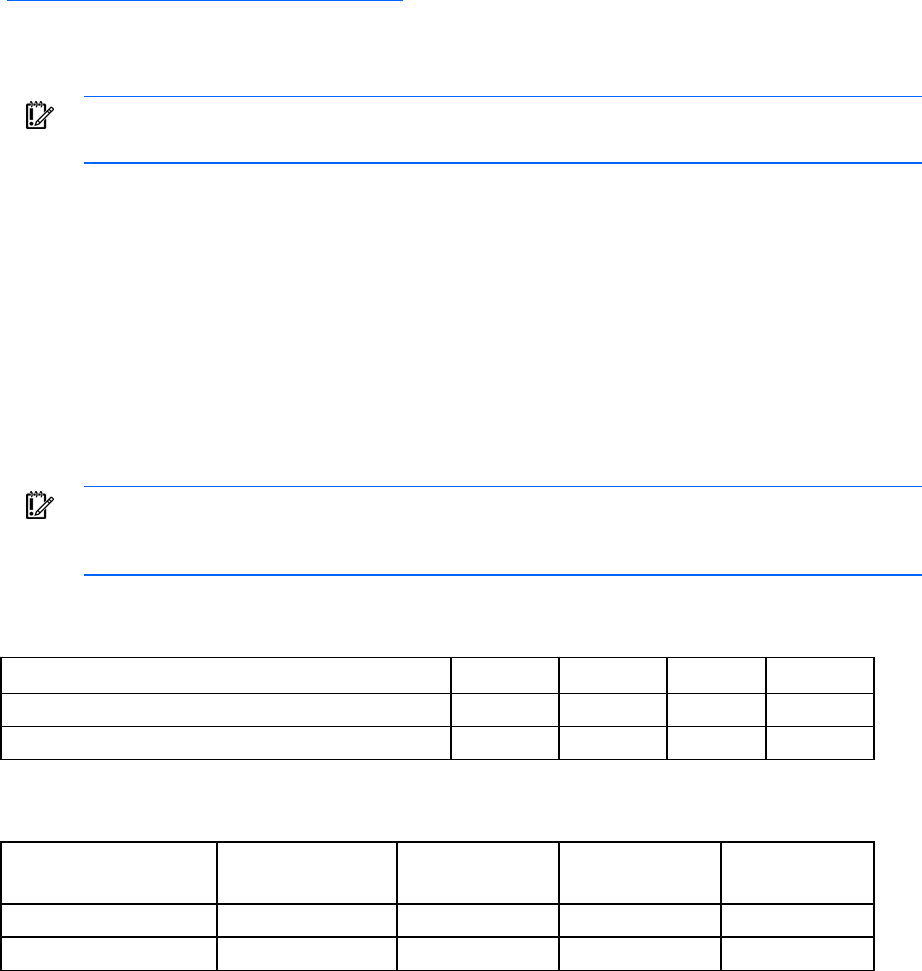 The following table shows firmware upgrade and downgrade support for the HP 4Gb Virtual Connect