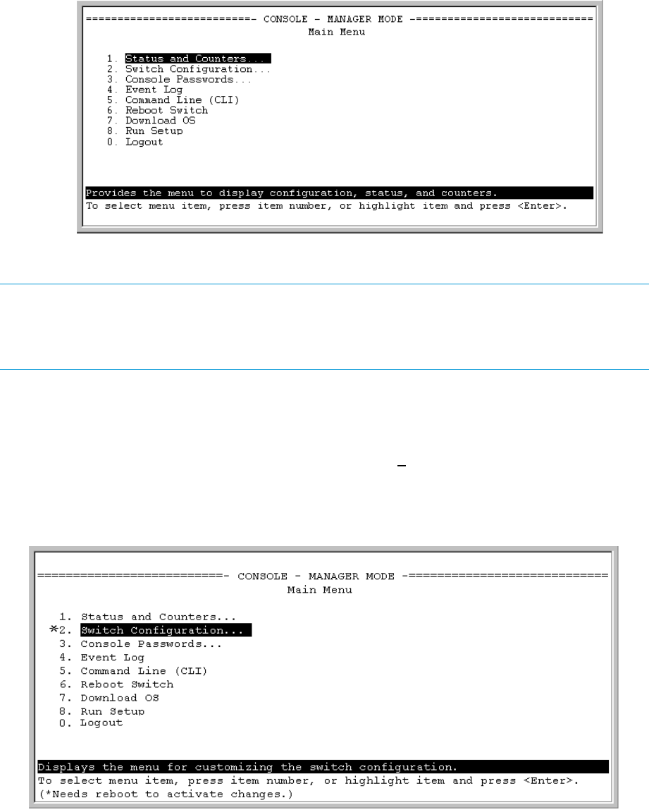 NOTE: To configure the switch to start with the menu interface instead of the CLI, go to the