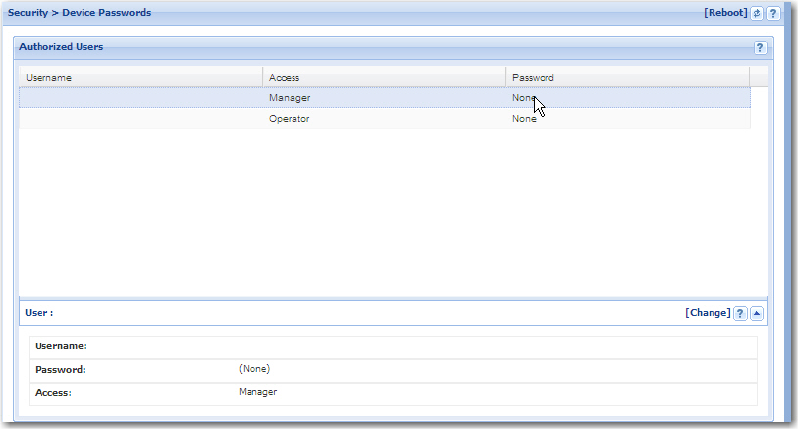 • Entering the manager password gives you full read/write/troubleshooting capabilities