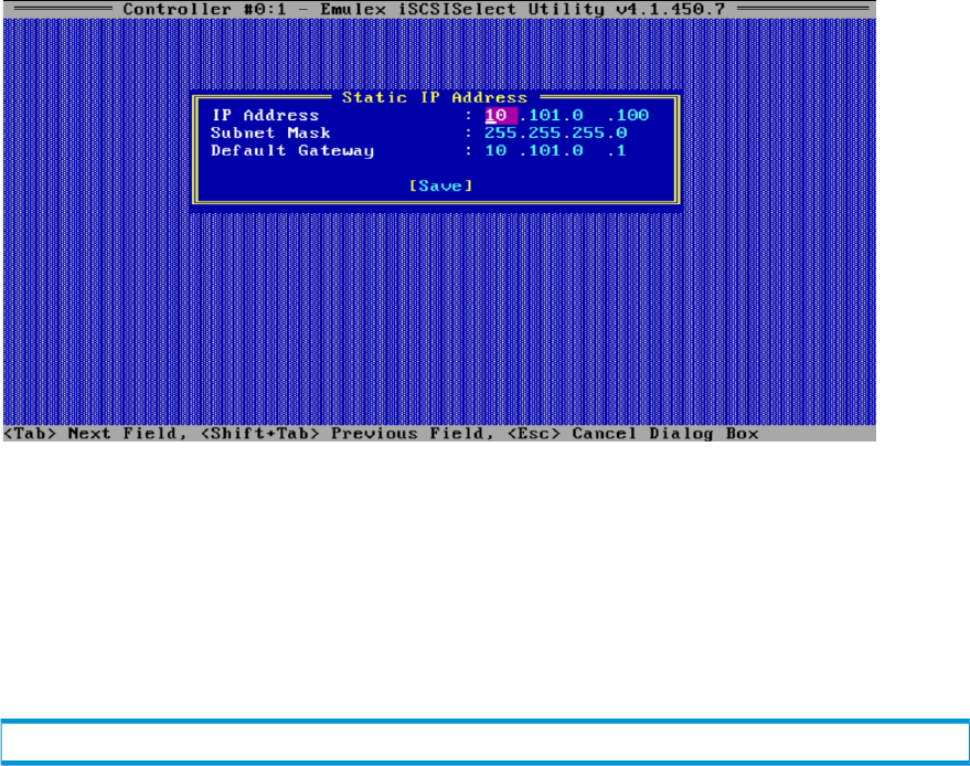 5. In the Network Configuration screen, select Configure Static IP Address and press Enter. The