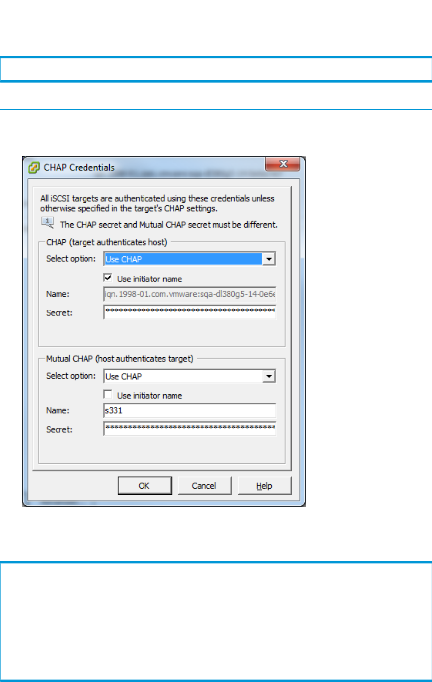 NOTE: If mutual CHAP on ESX is being configured, then target CHAP will need to be