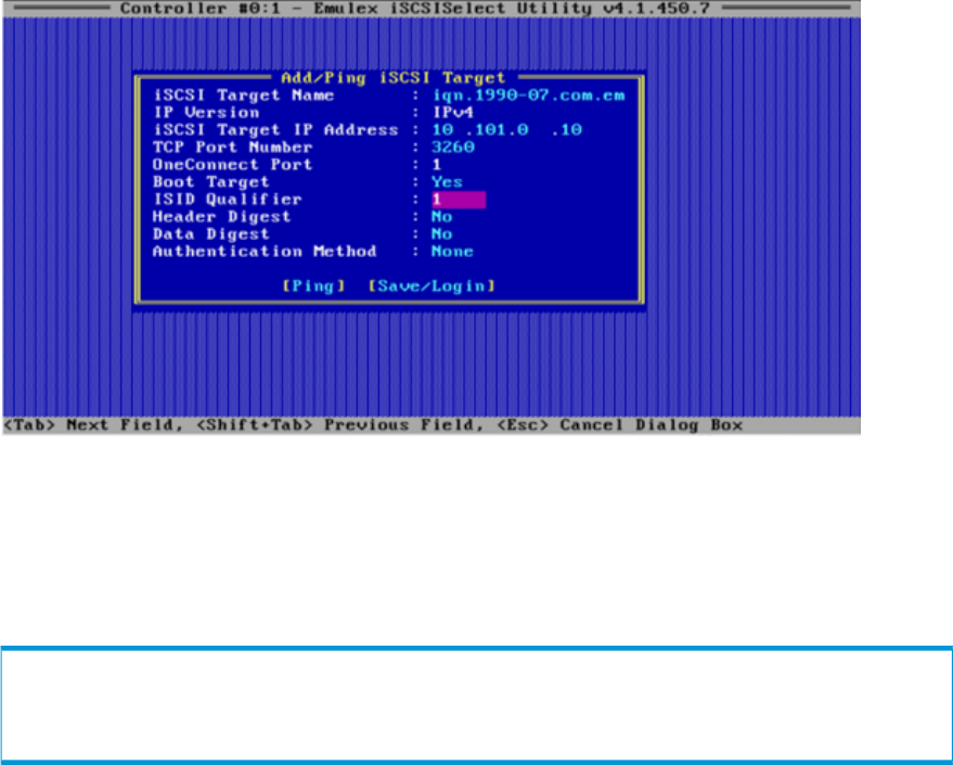screen as shown in “Adding an iSCSI Target” (page 24), select Authentication Method, and