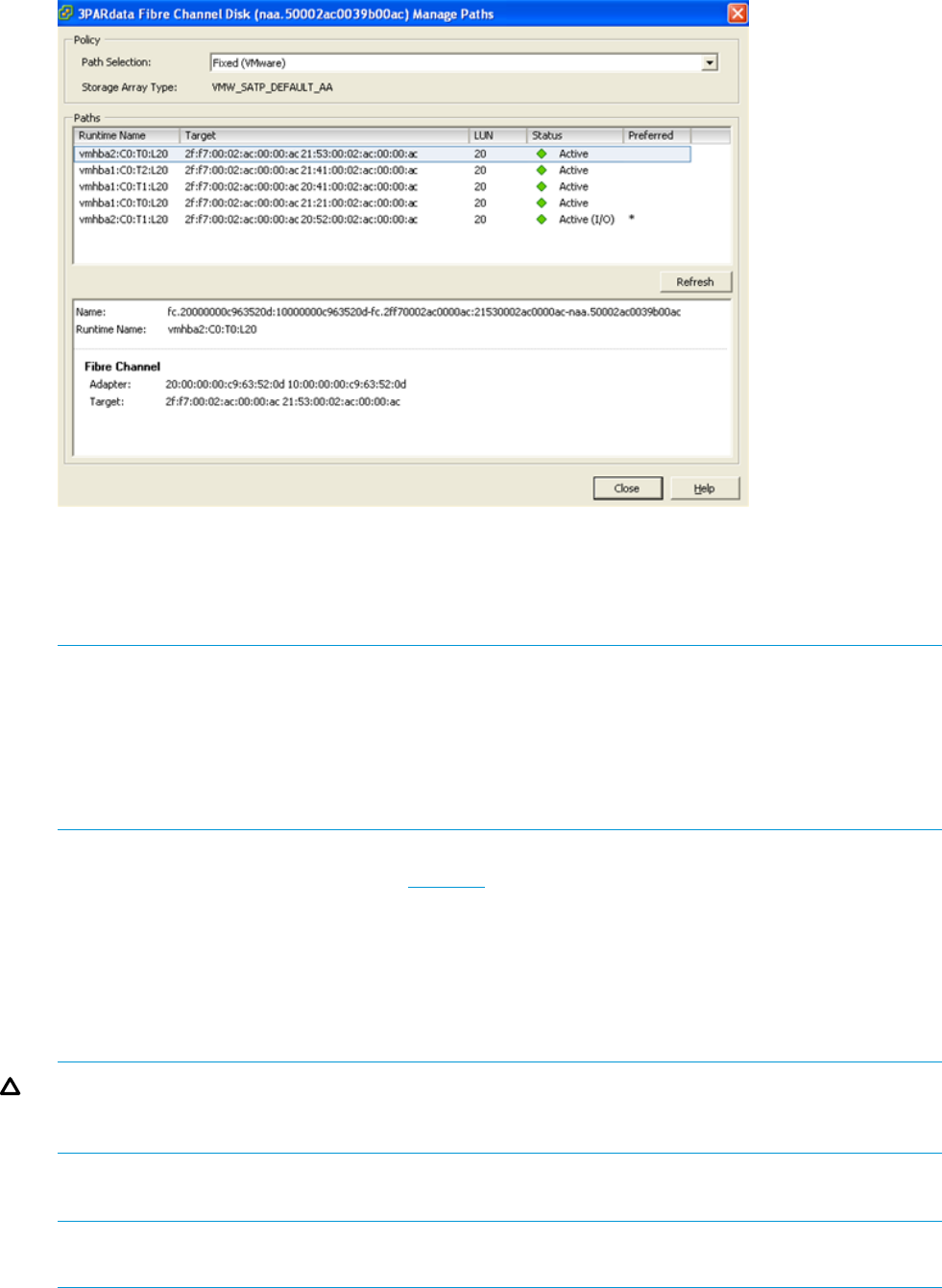 configuration for ESX 4.0 and later; however, this path policy is not enabled by default for HP 3PAR