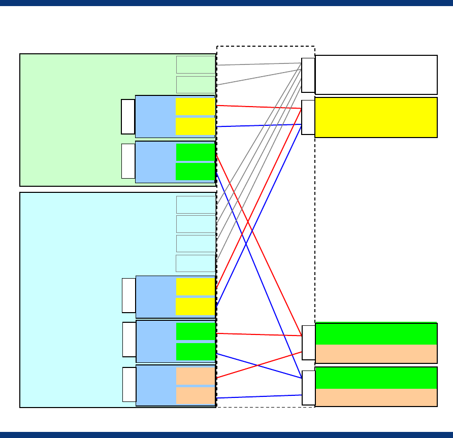 Figure 6. Mapping of server blade FC HBA ports (1x port connectivity) in the HP c3000 Enclosure