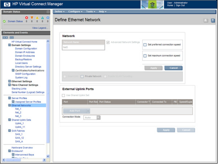 To access this screen, click the network name under the Ethernet Networks link in the left VC Manager