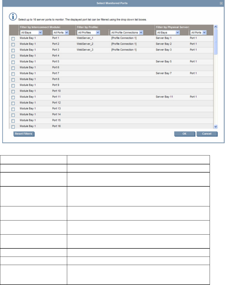 The Select Monitored Ports screen is displayed when the Select Ports button is clicked on the Ethernet