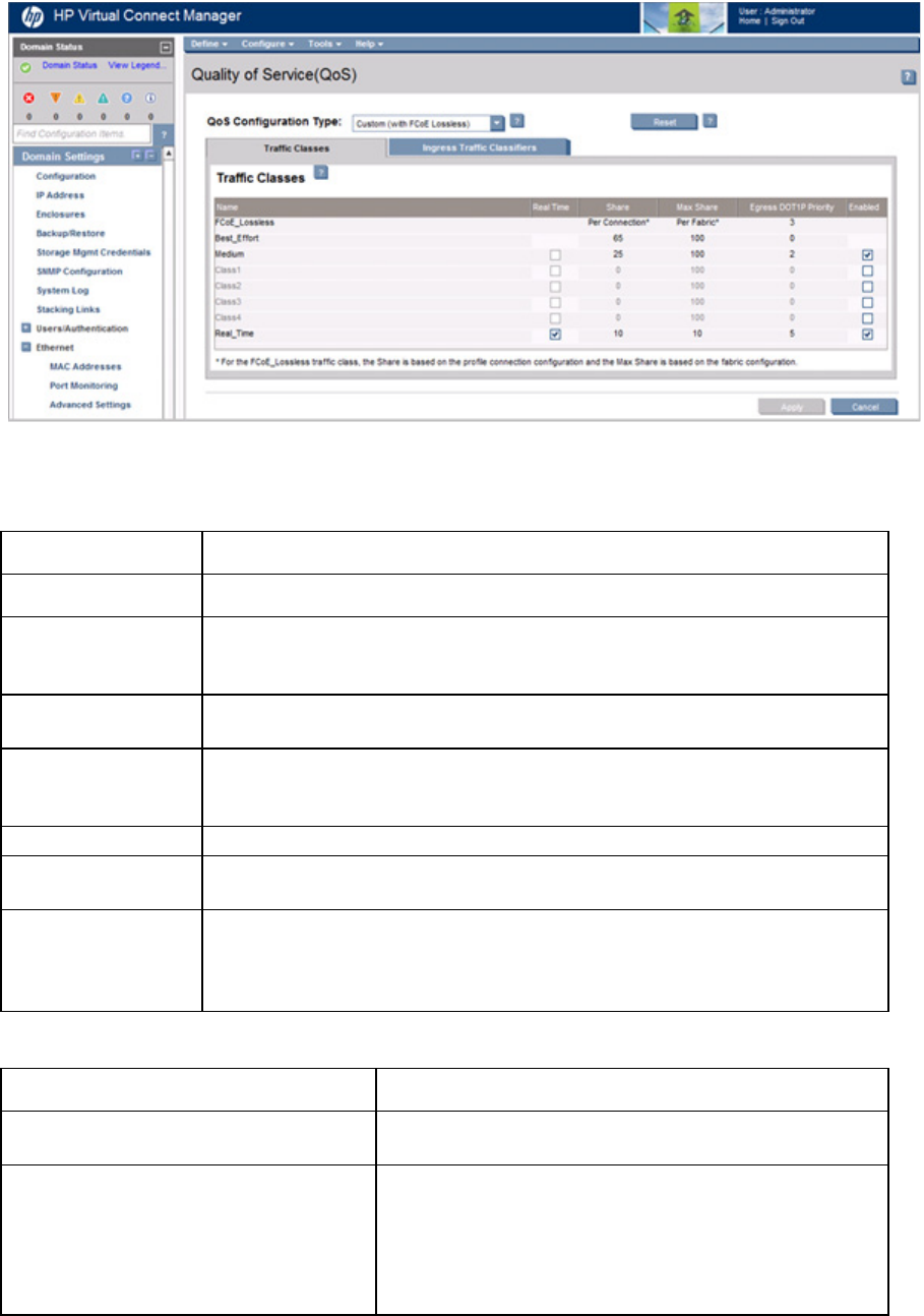 The FCoE Lossless and Best_Effort classes are enabled by default. Other classes are