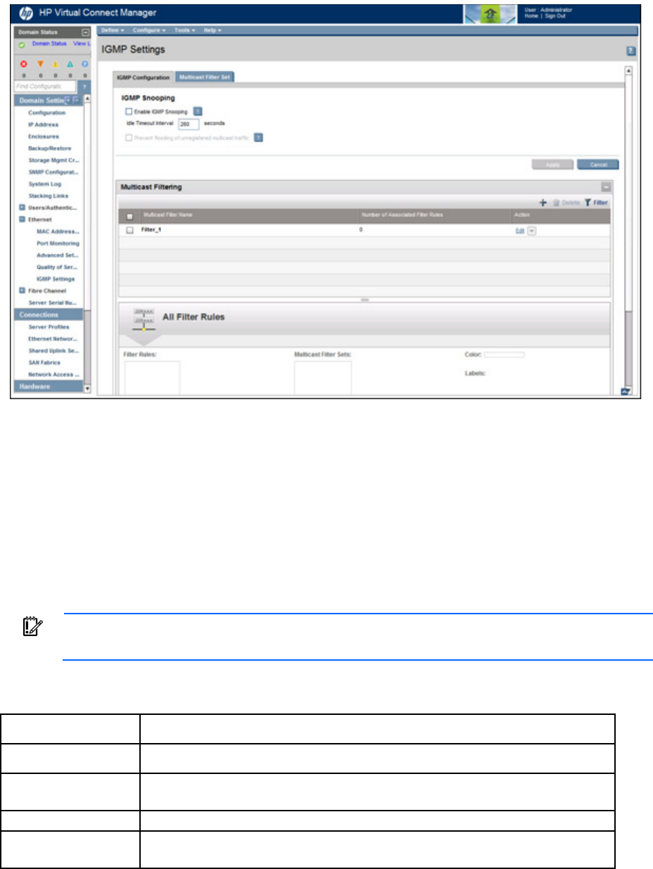 • Manage new Multicast Filter rules for a Multicast filter ("Multicast Filtering" on page 112)