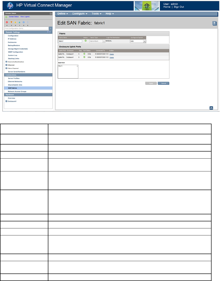The following table describes the fields within the Edit SAN Fabric screen.