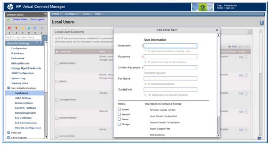 Up to 32 local user accounts can be created. Each account can be set up to have a combination of up to four