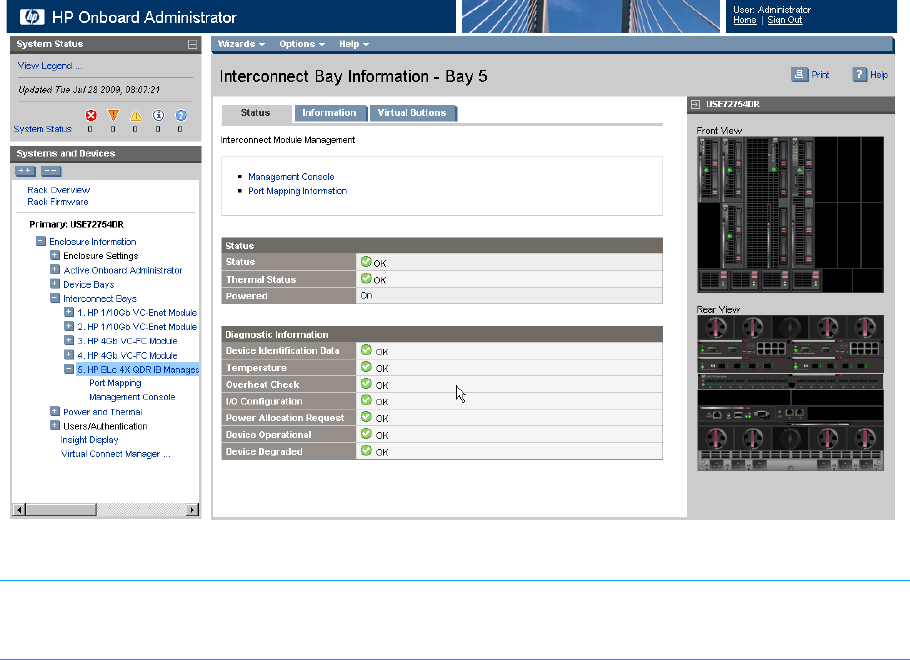 The HP Onboard Administrator screen example (see Figure 2) is a reference for port mapping.