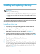 Replacing a fan tray CAUTION: • When you replace a fan tray from a running switch, be cautious of electricity hazards, and do not touch the rotating fan to avoid bodily injury. • If a fan tray fails, finish replacing the fan tray within 5 minutes. If both fan trays fail, finish replacing the fan trays within 3 minutes to avoid switch damage. IMPORTANT: Make sure the new fan tray is the same model as the one to be replaced. To replace a fan tray: 1. Prepare an antistatic bag for the removed fan tray. 2.