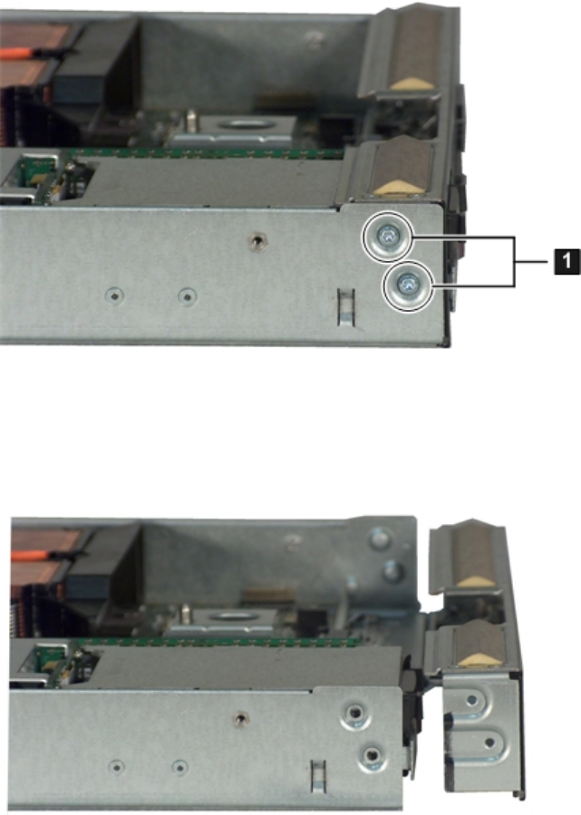 2. Attach the front display assembly to the front of the server blade with the Torx T-15 screwdriver.