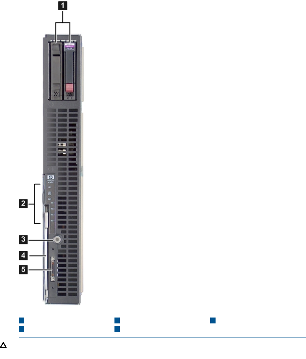 troubleshooting. Figure 3 shows the LEDs, ports, and controls on the front panel of the server blade.