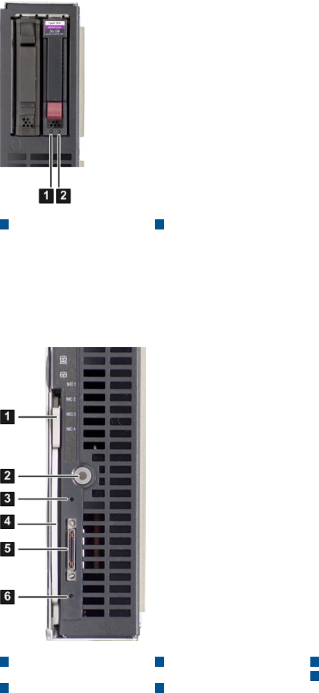 The Power button, and server blade extraction lever, and the SUV cable port are located on the
