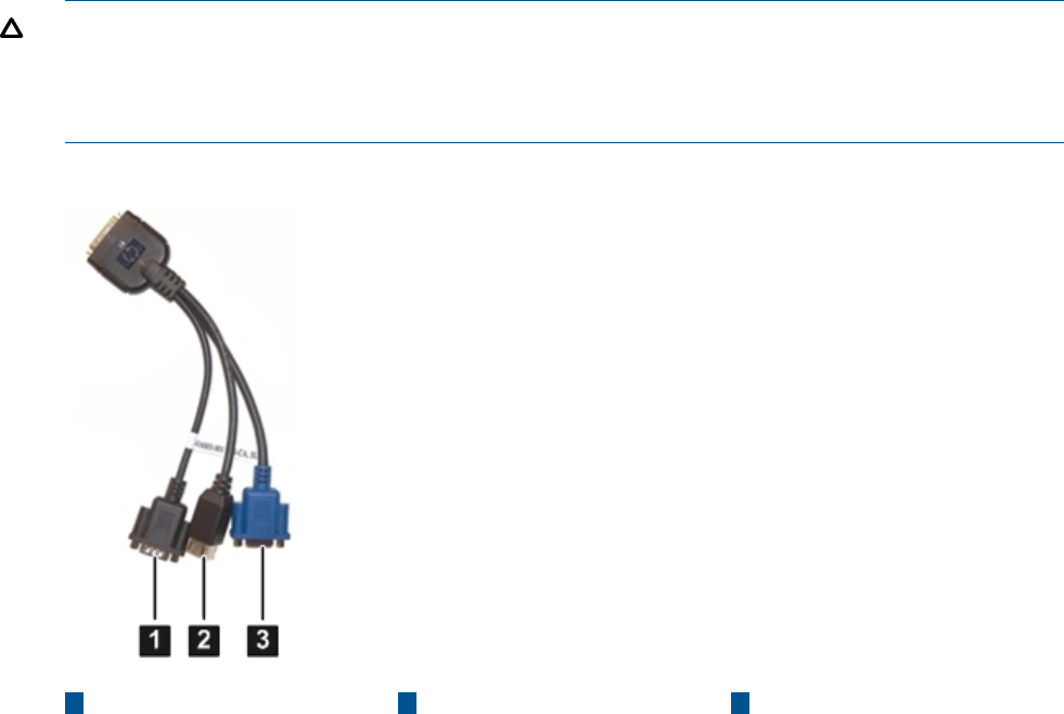 the cable can cause the port on the server blade to break. This can damage the system board,