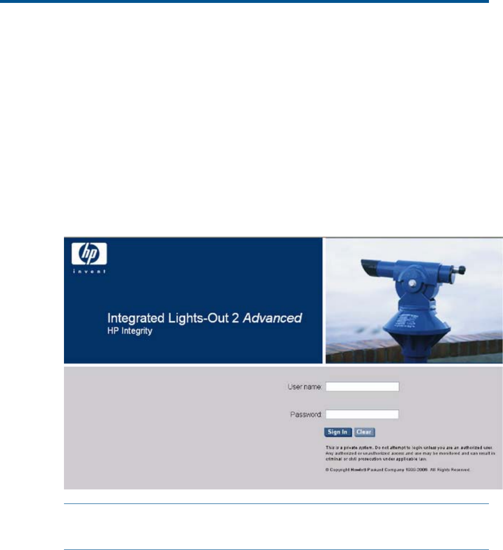 1. Open a web browser and enter the DNS name or the IP address for the iLO 2 MP.