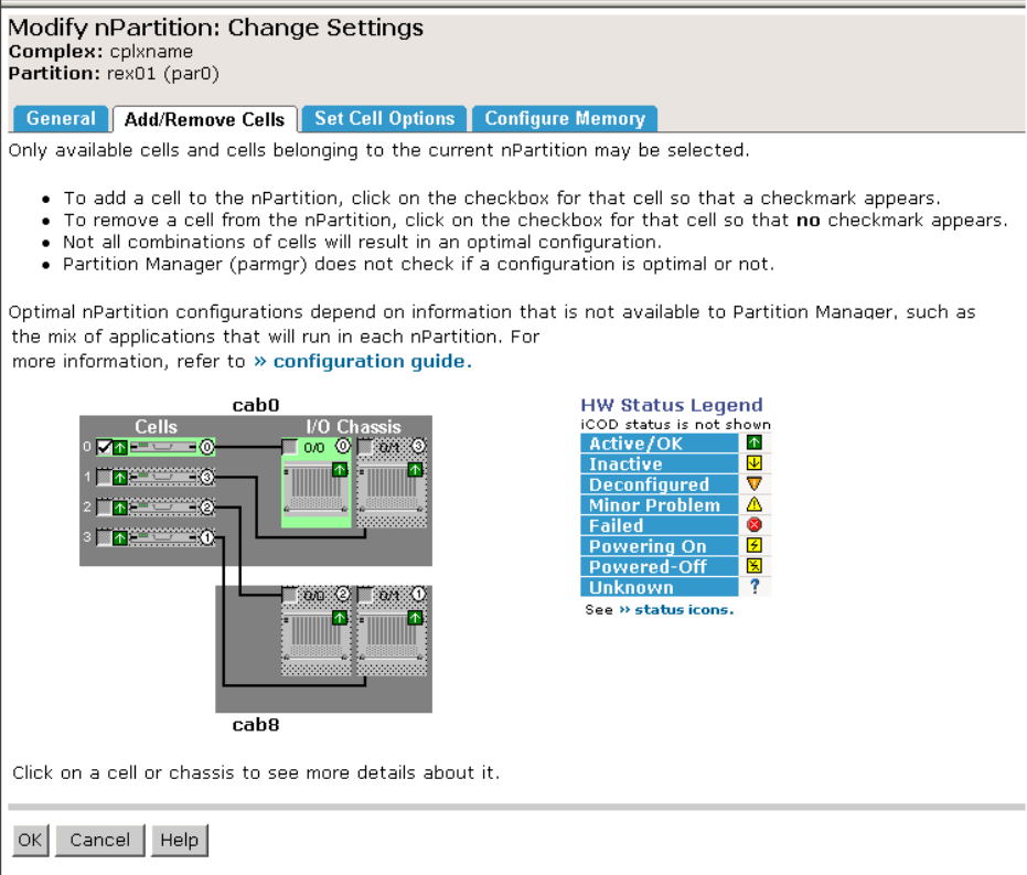and available. The other cells in the system are greyed out because they belong to other nPartitions.