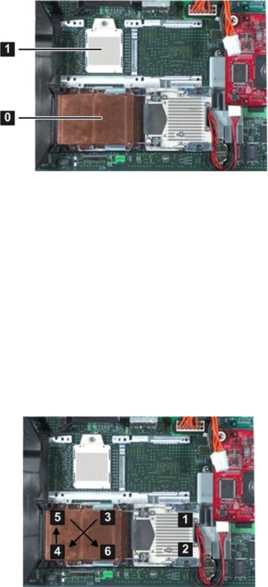 5. Loosen the captive shoulder screws (3 - 6) on the processor heat sink in the order shown in