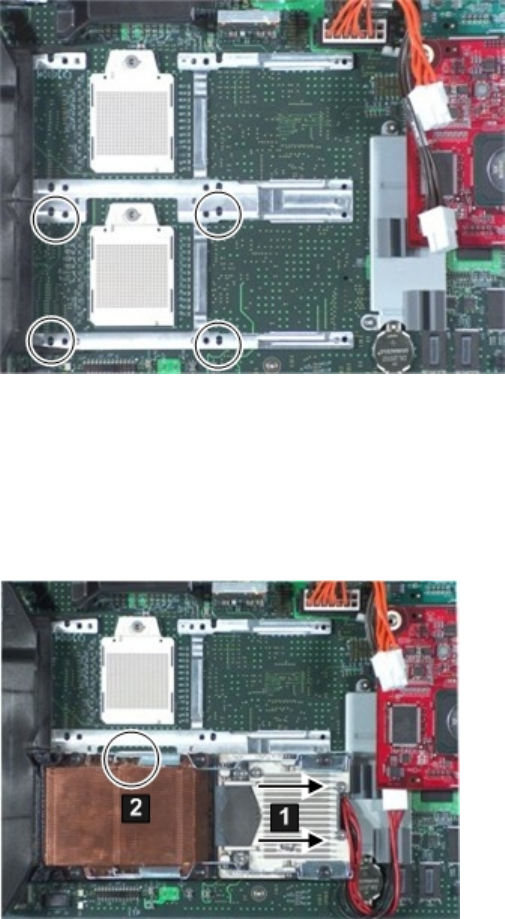 6. Tighten the captive shoulder screws (1 - 4) on the processor heat sink with the Torx T-15