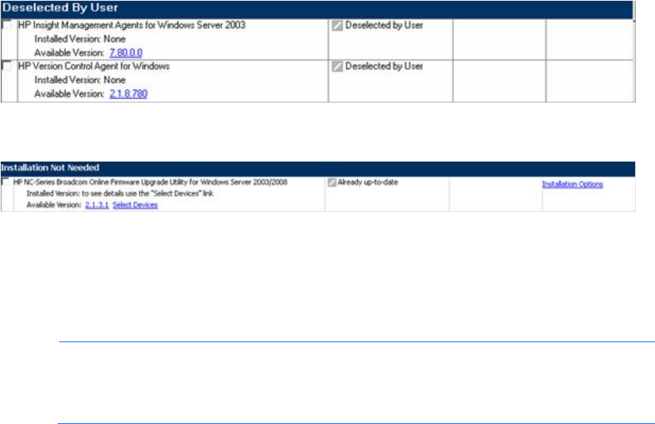 • Installation Not Needed—The components in this section do not need to be updated, but can be. To