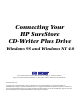 Connecting Your HP SureStore CD-Writer Plus Drive Windows 95 and Windows NT 4.0 R U.S.: Hewlett-Packard Company, 815 SW 14th Street Bldg. E., Loveland, CO 80537 Europe: Hewlett-Packard Nederland B.V., P.O. Box 58144, 1040 HC Amsterdam, The Netherlands C4358-90100 Rev. B Copyright 1997. Hewlett-Packard Company. All rights reserved. Hewlett-Packard is a registered trademark of Hewlett-Packard Company. Microsoft and Windows are U.S. registered trademarks of Microsoft Corporation. Pentium is a U.S.