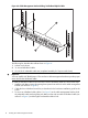 Figure 4 A Cable Management Bracket Holding 16 InfiniBand Uplink Cables 1 2 3 The 1. 2. 3. following list describes the callouts shown in Figure 4: Left rear rack column 16 secured InfiniBand cables One of the 16 releasable cable ties (completed assembly for 16-port switch shown) Important: You must install the HP BladeSystem c-Class enclosure cable management bracket to provide proper strain relief for the InfiniBand cables.