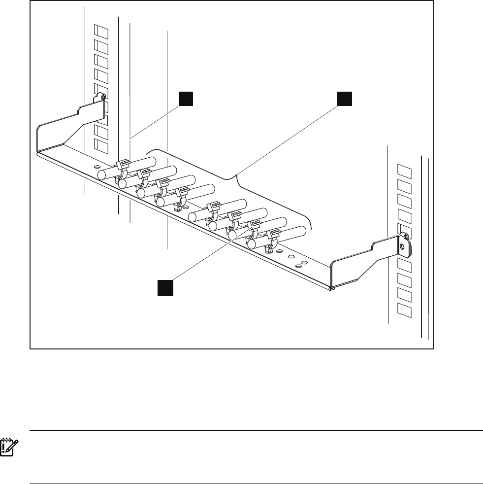 4. To secure an InfiniBand cable (callout 1 in Figure 3-3) to the cable management bracket,