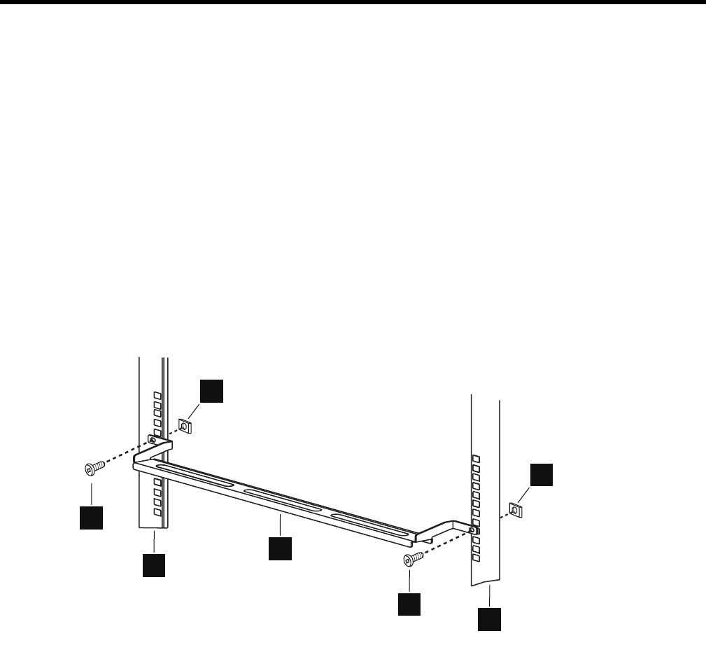 2. Install the machine screws (callout 3) and cage nutes (callout 4) for the cable management
