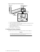 Figure 3: Attaching the Rail to the Rack Columns Rear Left Column Front Left Colum M6 x 16MM M6 Cage Nut 1. Locate the marked mount location. 2. Clip a cage nut into the back of the middle and top holes of both the front and rear columns, using a total of four nuts. 3. Using a #1 Phillips screwdriver, secure the rail to the rack columns with a M6 x 16-mm pan-head screw. 4. Repeat steps 1–3 for the right rail.