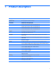 product description audio 2 chipset 1 diskette drive 2 display panel 1 docking support 4 Ethernet 3 external media cards 3 graphics 1 hard drives 2 keyboard 4 memory module 1 microphone 2 model name 1 modem module 2 operating system 4 optical drives 2 pointing devices 4 ports 3 power requirements 4 processors 1 security 4 serviceability 5 wireless 3 R rear components 14 recovery discs creating 134, 140 using 138, 144 recovery partition 139, 145 recovery points 137, 143 removal/replacement preliminaries 37 p