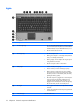 (4) Left TouchPad button Functions like the left button on an external mouse.