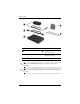 First-time setup Components 1 HP Smart AC Adapter 4 Modem cable (optional for setup) 2 Power cord 5 Modem adapter (optional for setup) 3 Battery pack only the included AC adapter or one approved for this ✎ Use computer. you use dial-up networking, the modem cable is optional ✎ Unless for setup.
