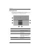 Components Keys Component Description 1 Execute frequently used system functions when pressed in combination with the fn key. Function keys (6) to the table in “Hotkey quick reference” for a description of ✎ Refer each hotkey. 2 fn key Executes frequently used system functions when pressed in combination with a function key or the esc key. 3 Windows logo key Displays the Windows Start menu. 4 Windows applications key Displays a shortcut menu for items beneath the pointer.