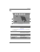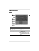 Components Keys Component Description 1 Execute frequently used system functions when pressed in combination with the fn key. Function keys (6) to the table in “Hotkey quick reference” for a description of ✎ Refer each hotkey. 2 fn key Executes frequently used system functions when pressed in combination with a function key or the esc key. 3 Windows logo key Displays the Windows Start menu. 4 Windows applications key Displays a shortcut menu for items beneath the pointer.