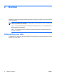 Backing up the system Using HP Backup and Recovery Manager, you can ● Back up specific files and folders. ● Back up the entire hard drive. ● Back up modifications since your last backup, using HP system recovery points. ● Schedule backups. Backing up specific files or folders You can back up specific files or folders to the recovery partition on the hard drive, to an optional external hard drive, or to discs.