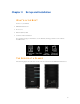Chapter 2. Set up and Installation W HAT ' S IN THE B OX ? In the box you will find: • HP MediaSmart Server • Power cord • Ethernet (RJ-45) cable • Software and Documentation For warranty and support information, see the Warranty and Support Guide on the Software Installation Disc. T HE S ERVER AT A G LANCE The following lights and symbols are found on the front and back of the HP MediaSmart Server.