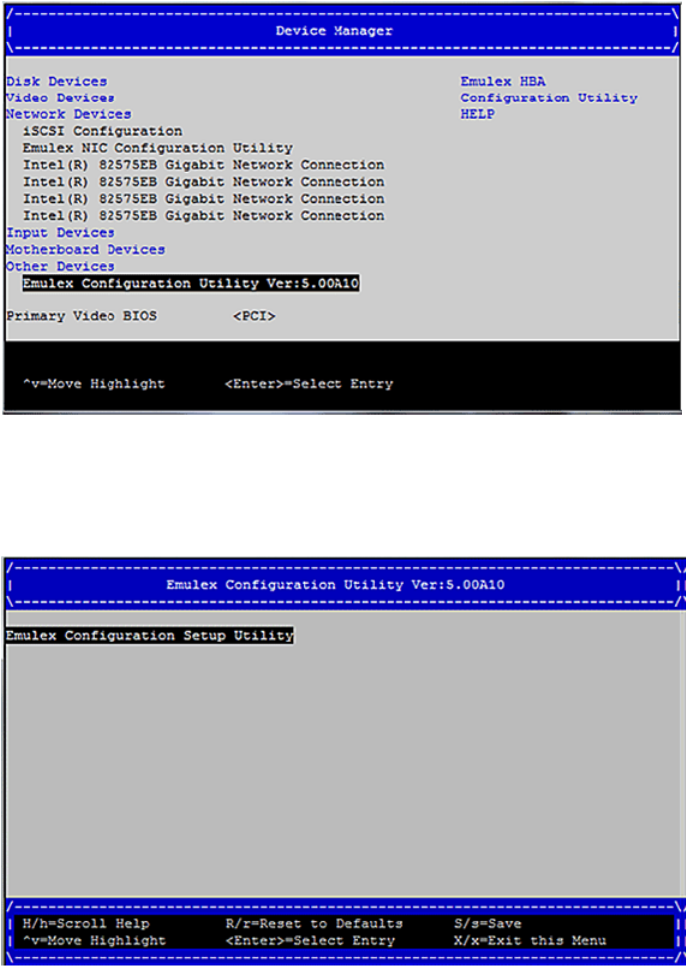 2. Select Emulex Configuration Utility Ver:X.XXXXX and press Enter.