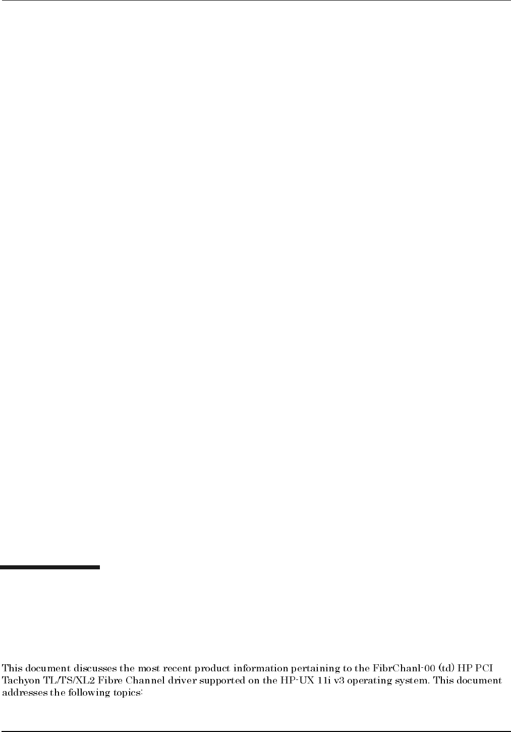 HP PCI Tachyon TL/TS/XL2 Fibre Channel Driver Release Notes, December 2007
