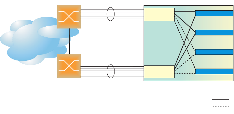 as a backup. In this example, all uplink ports on the primary switch belong to a single trunk group,