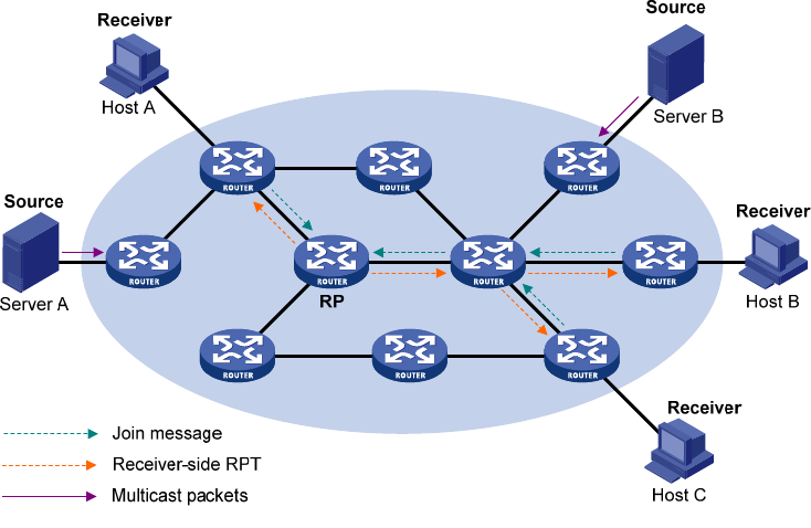 3. The routers along the path from the receiver's directly connected router to the RP form an RPT