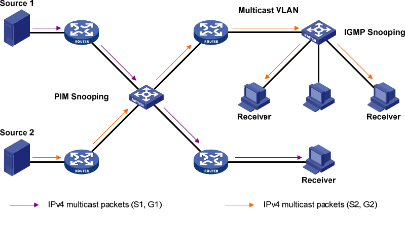 the hosts and Layer 3 multicast devices, effectively controlling the flooding of multicast data in a