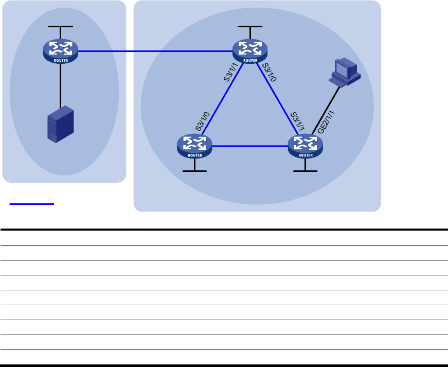 The configuration on Router B and Router D is similar to the configuration on Router A.
