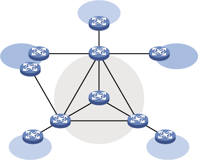 • The provider (P) device belongs to the public network. The customer edge (CE) devices belong to