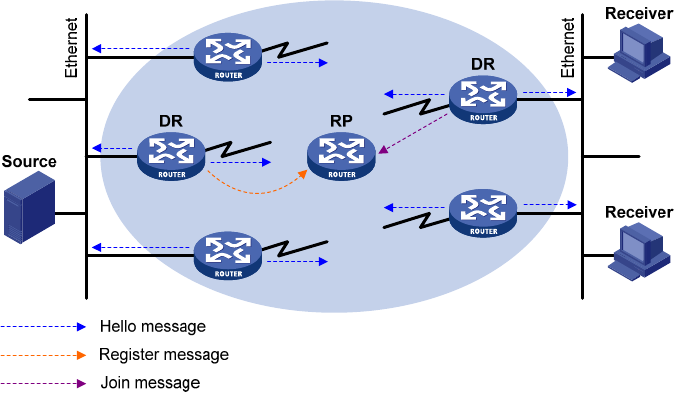 multicast sources or to receivers. The DR at the receiver side sends join messages to the RP. The