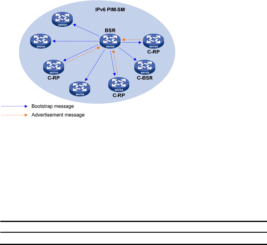 to the BSR. A C-RP-Adv message contains the address of the advertising C-RP and the IPv6 multicast