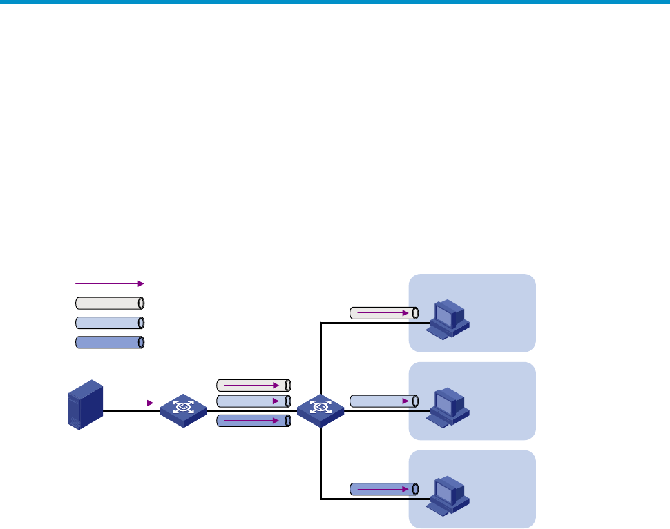 Figure 109 shows the traditional multicast programs-on-demand mode. When the hosts ( Host A, Host B,