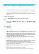 Default command level 2: System level Parameters dynamic: Specifies dynamic MAC address entries. These entries can age. static: Specifies static MAC address entries. They do not age, but you can add or remove them. mac-address: Specifies a MAC address in the format of H-H-H, where 0s at the beginning of each H (16-bit hexadecimal digit) can be omitted. For example, entering "f-e2-1" indicates that the MAC address is "000f-00e2-0001.