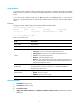 Views Any view Default command level 0: Visit level Parameters interface interface-type interface-number: Specifies an interface by its type and number. vlan vlan-id: Specifies a VLAN ID in the range of 1 to 4094. |: Filters command output by specifying a regular expression. For more information about regular expressions, see Fundamentals Configuration Guide. begin: Displays the first line that matches the specified regular expression and all lines that follow.