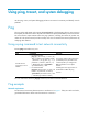 Contents Using ping, tracert, and system debugging ··············································································································· 1 Ping ····················································································································································································· 1 Using a ping command to test network connectivity ···························································································· 1 Ping example